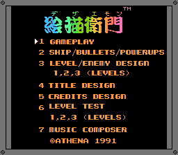 Dezaemon is a Famicom game released in 1991 by Athena Co. LTD. It only saw a release in Japan, so it's largely unknown to western audiences. Dezaemon is the first in a series of "Shoot 'em up construction kits", and is a solid effort for the limited 8-bit console. Perhaps one problem hindering its broader appeal is the lack of English documentation, which can be essential in mastering this relatively intricate game.