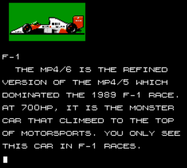Before the original Need for Speed games, before Gran Turismo and Forza, there was Formula One: Built To Win on NES. The first racing game on a home console for true car enthusiasts, by car enthusiasts.