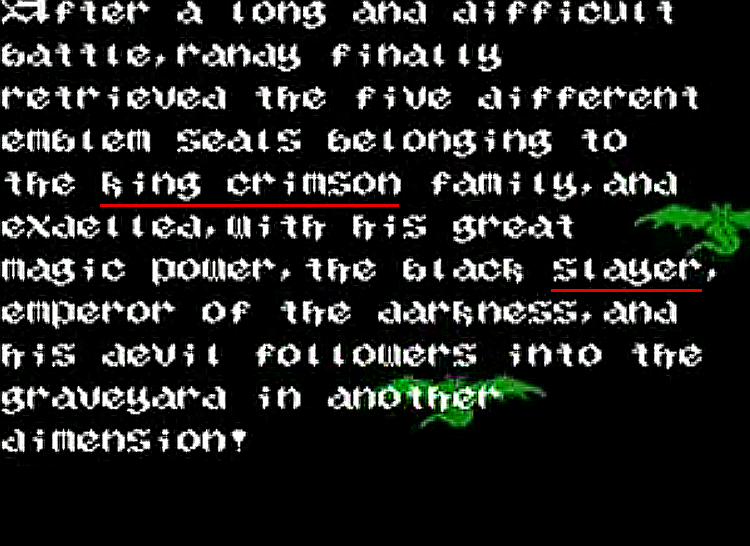 Speaking of metal bands. You've been down too long in the midnight sea if you're a metal-head and haven't heard of this worthy Castlevania relative. One thing that is understandable though, is if you've never reached the end of this game. But, by not beating the game you'd miss out on mentions of Slayer, King Crimson, Randy Rhodes, and Zakk Wylde in the game's credits: